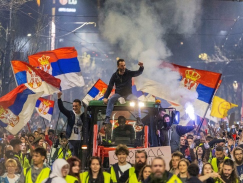 По улицам уже полгода бродят с маниакальными улыбками на лицах толпы "негодующих" студентов. В руках флаги, транспаранты. Возят с собой здоровенный макет "Троянского" коня. И также, как и в Киеве, среди "мирных" юнцов все больше встречается крепких парней, которые свои лица прячут под масками. Эти пока присматриваются к происходящему. И, как и на майданах прошлого, активизировались футбольные фанаты. Здесь это "болеющие" за спортивные клубы "Партизан" и "Црвена звезда".
