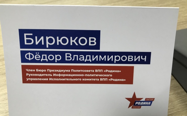 В мероприятии принял участие руководитель Информационно-политического управления, член Бюро Президиума партии "РОДИНА" Федор Бирюков. Он передал участникам конференции приветственные слова от лидера "РОДИНЫ", депутата Госдумы Алексея Журавлева и выступил на тему новой партийно-политической стратегии: "РОДИНА - партия российских регионов".