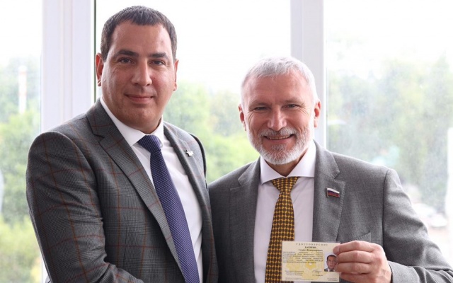 Председатель Партии «РОДИНА» Алексей Журавлев встретился в Краснодаре с активистами Регионального отделения и вручил удостоверение лидеру регионального списка кандидатов в депутаты Государственной Думы Федерального Собрания Российской Федерации восьмого созыва, выдвинутого в составе федерального списка кандидатов ВСЕРОССИЙСКОЙ ПОЛИТИЧЕСКОЙ ПАРТИИ «РОДИНА» - Самвелу Багиряну.