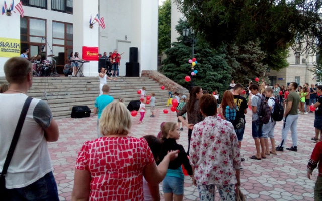 К 18 часам заработали две музыкальные сцены, которые также организовали для жителей и гостей города члены партии «РОДИНА». Одна из них разместилась под Митридатской лестницей, и на ней выступали юные таланты: керченские детские ансамбли самодеятельности. Второй концерт партийцы провели у театра имени Пушкина, к участию в котором пригласили местные коллективы с более «взрослой» музыкой, рассчитанной на молодёжь и старшее поколение слушателей.