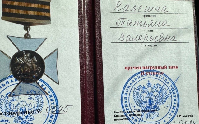 Также Татьяна Калегина удостоена почётных наград интербригады "Пятнашка" – нагрудных знаков II степени.