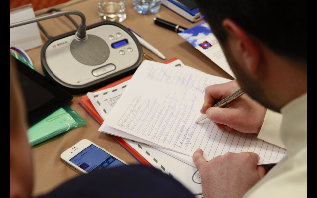 Владимир Кудашов осветил в своём докладе технологические особенности политической конкуренции. Рассказал о тех изменениях, которые произошли в избирательном законодательстве с 2012 года, когда "новая" "РОДИНА" снова пришла на политическую арену и с чем ей пришлось столкнуться во время избирательных кампаний на протяжении последних трёх лет.
