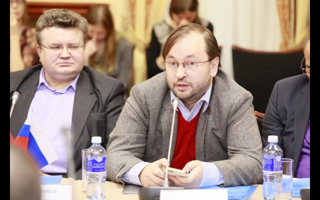 Далее модератор дискуссии – член Бюро, идеолог партии "РОДИНА" Фёдор Бирюков – предоставил слово для доклада советнику председателя партии, политтехнологу Владимиру Кудашову.
