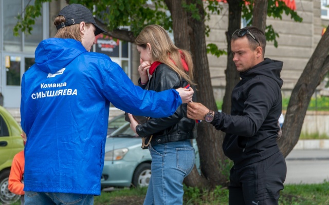 Челябинский актив традиционно раздал ленточки-триколоры и фирменные браслеты жителям города, поздравляя с праздником.