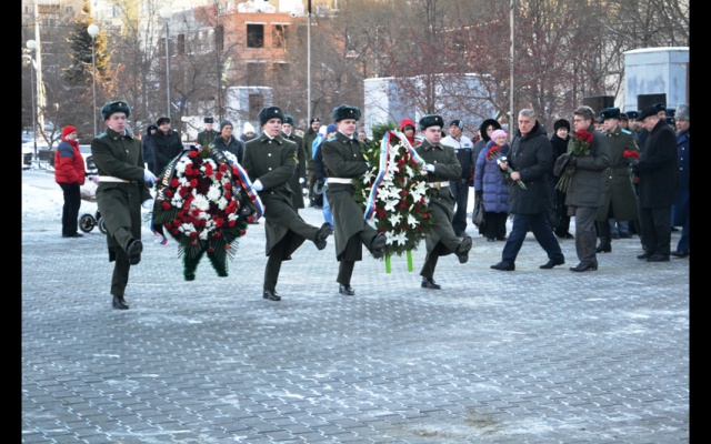 11 декабря в Челябинске состоялось возложение венков и цветов на Аллее Славы к памятнику российским воинам, погибшим в локальных войнах и конфликтах "Доблестным сынам Отечества", посвящённое Дню Героев Отечества, 35-й годовщине ввода войск в Афганистан и начала контртеррористической операции в Чеченской Республике.