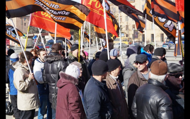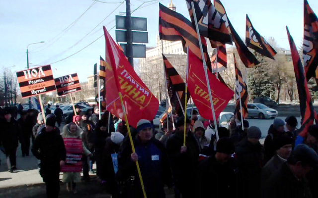После проведенного митинга, колонна патриотов прошла вдоль по проспекту Ленина, скандируя лозунги в поддержку курса Президента России.
