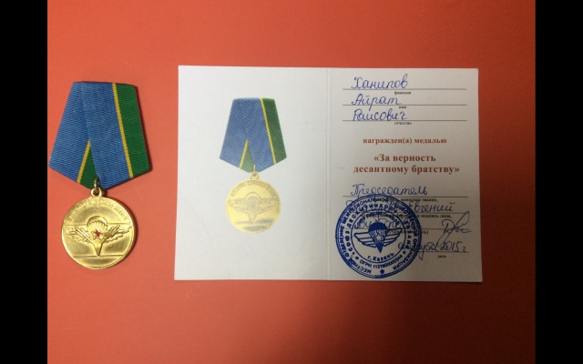 2 августа 2015 года, в день 85-летия создания Воздушно-десантных войск, Айрату Ханипову ветераны ВДВ вручили медаль "За верность десантному братству" за помощь в развитии военно-патриотического движения в Татарстане.