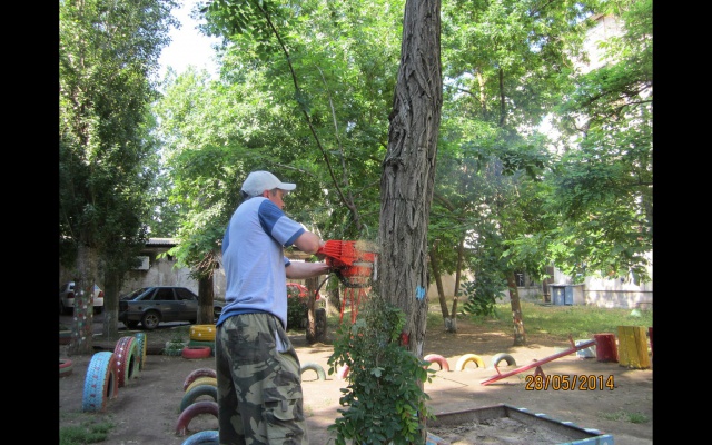 И уже 28 мая, утром, наши активисты: Огороднов Руслан, Карлов Сергей, Григоренко Андрей, Малиборский Сеогей, Гридасов Юрий, Перминов Алексей, во главе с председателем Александром Бакаловым, спилили это и ещё несколько сухих деревьев рядом с детской площадкой.