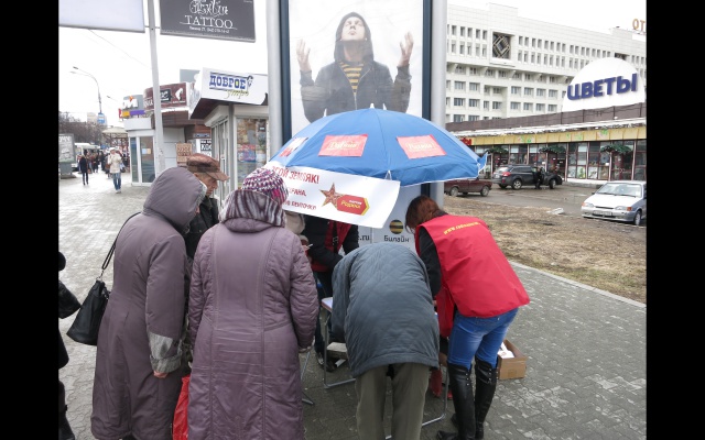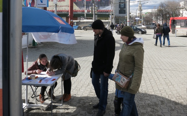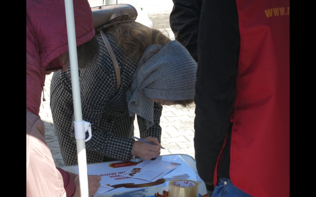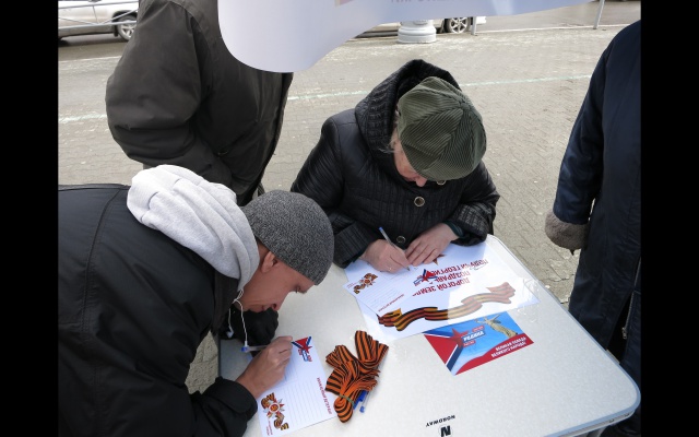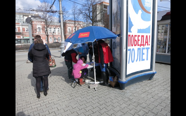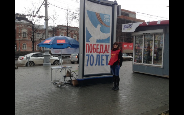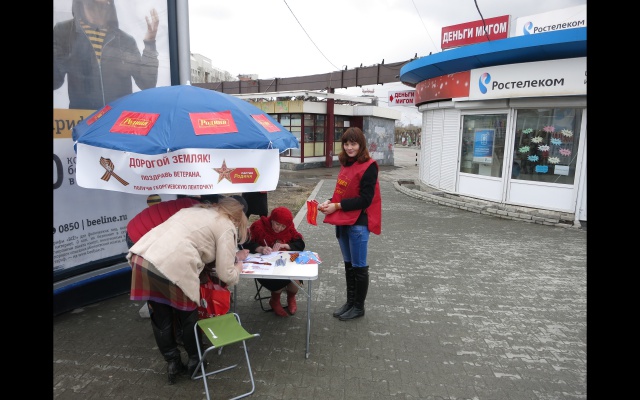 В выходные дни на центральных улицах Перми были развёрнуты пикеты по сбору поздравительных открыток, где каждый желающий мог написать поздравление ветерану войны. Каждому написавшему в подарок выдавалась георгиевская лента.