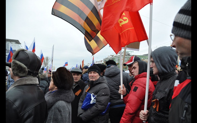 Руководство региональных отделений Всероссийской политической партии "РОДИНА" и Добровольческого движения особого назначения (ДОН) в поддержку армии, флота и оборонно-промышленного комплекса в Пермском крае приняло участие в митинге "Своих не сдаем!" в поддержку российско-украинского братства, состоявшемся в центре Перми 10 марта 2014 года.
