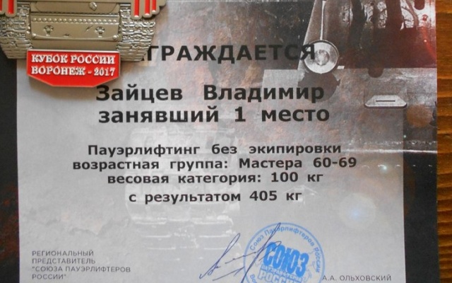 Соратник партии "РОДИНА" Владимир Зайцев занял первое место в соревнованиях по пауэрлифтингу на Кубке России 2017 - "Битва за Воронеж". Его общий результат - 405 кг. Соревнования проходили в г. Воронеже с 6-8 мая 2017 г. Поздравляем и гордимся!