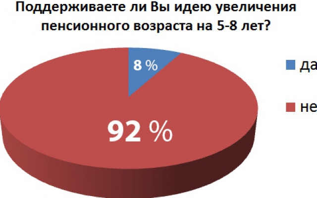Из опрошенных более 1 000 новомосковцев подавляющее большинство – 92 % — высказалось против повышения пенсионного возраста.